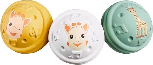 Ce pack regroupe trois balles musicales inspirées de l'univers Sophie la Girafe, fabriquées en caoutchouc naturel. Chaque balle produit un son différent selon l'action : froissement, grelot ou pouet, permettant à l'enfant de comprendre la relation de cause à effet.